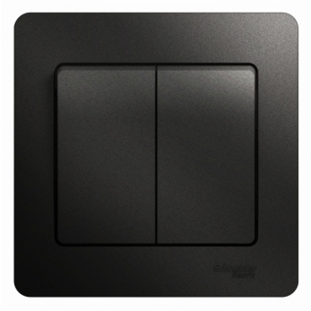 Выключатель Glossa (в сборе, цвет антрацит) двухклавишный подходит для сетей 250 В, на ток 10 А.