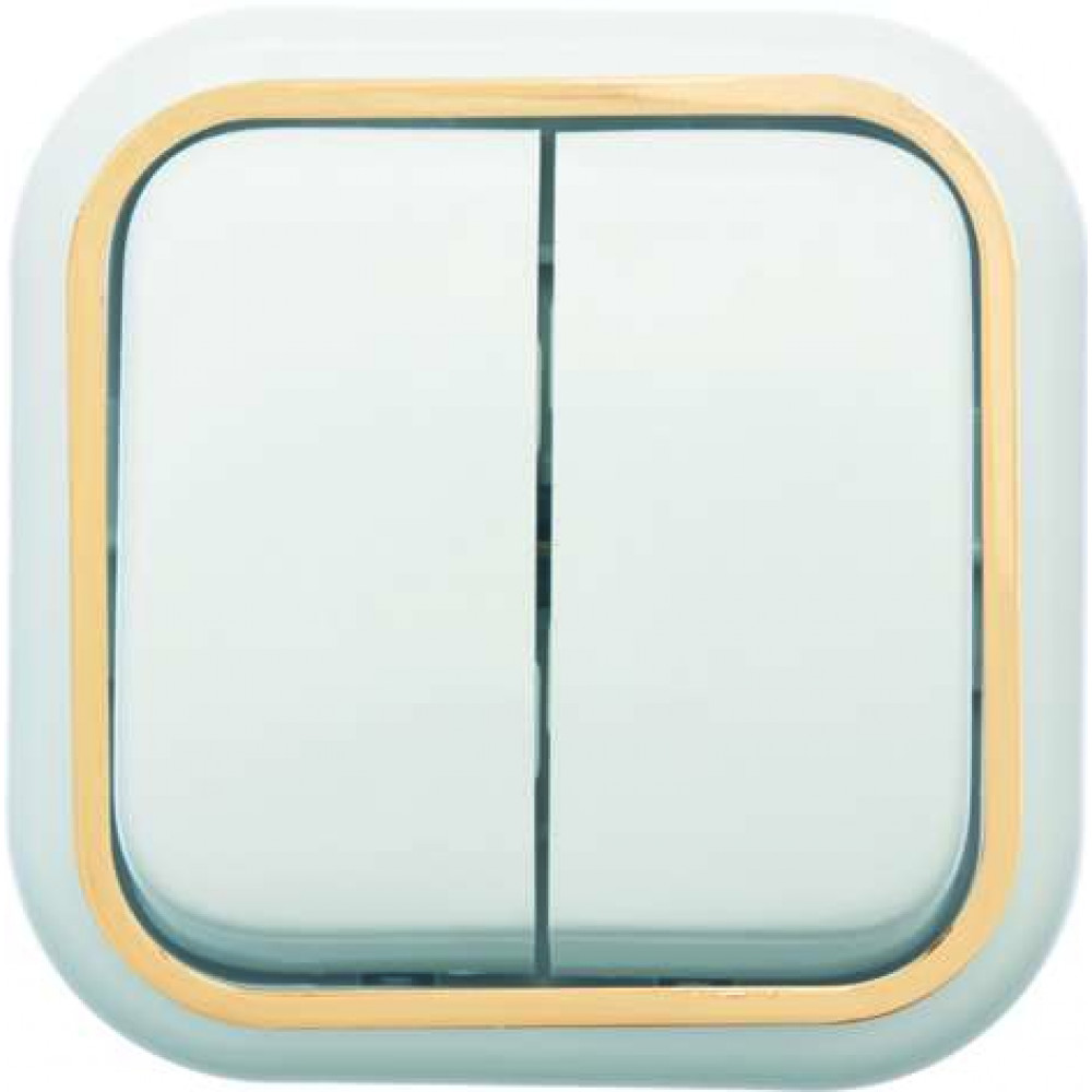 Выключатель 2-кл. ОП Валентина 10А IP20 А56-025 бел./зол. Кунцево 7635, Выключатель и переключатель открытого монтажа