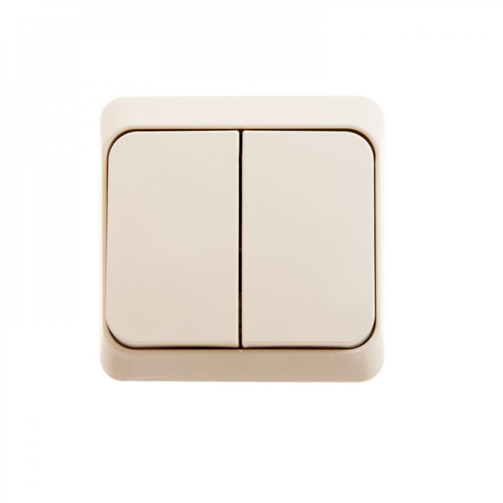 Выключатель ЭТЮД (кремовый, открытой установки) двухклавишный предназначен для применения в сетях до 250В, на ток до 10А. Наличие подсветки делает его легко находимым при отсутствии освещения. Светодиод находится внутри выключателя, и в темное время подсветка видна по контуру клавиш. Две клавиши позволяют управлять двумя источниками света с одной точки. Сделано в России.