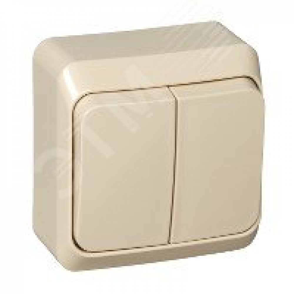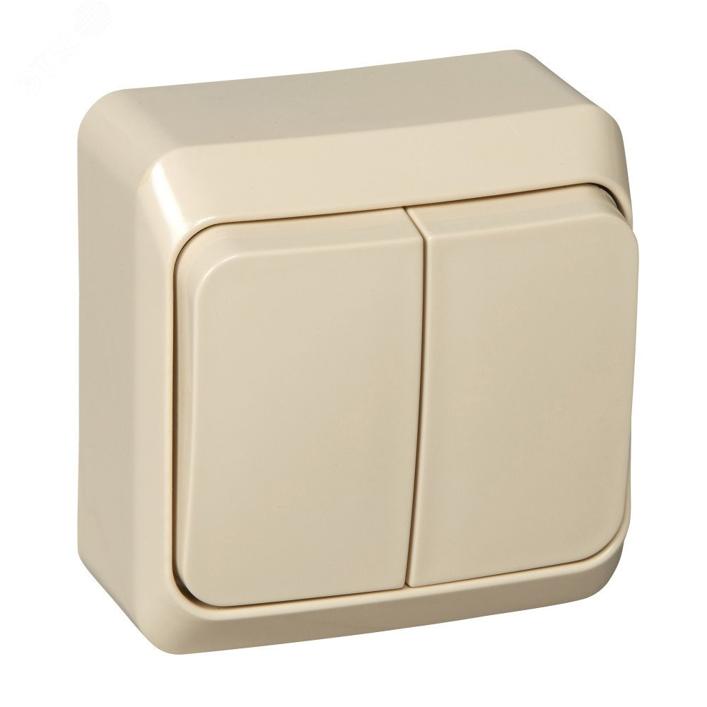 Выключатель 2-кл. ОП Этюд 10А IP20 с подсветкой крем. SE BA10-006K, Выключатель и переключатель открытого монтажа