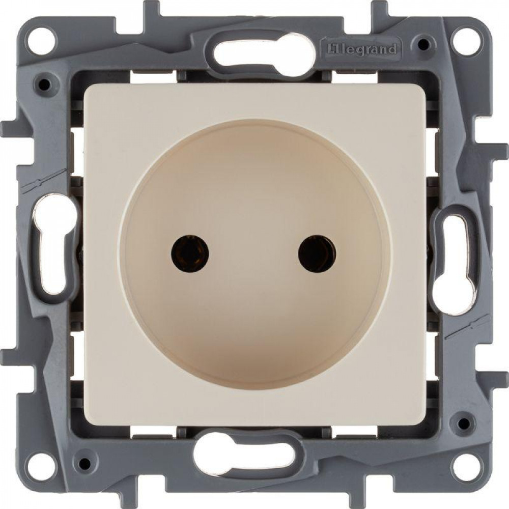 Розетка без заземления Legrand Etika для скрытого монтажа, цвет слоновая кость. Максимальный ток 16 А, максимальная мощность 3680 Вт. Применяется в зданиях с проводкой без заземления (без защитного проводника).