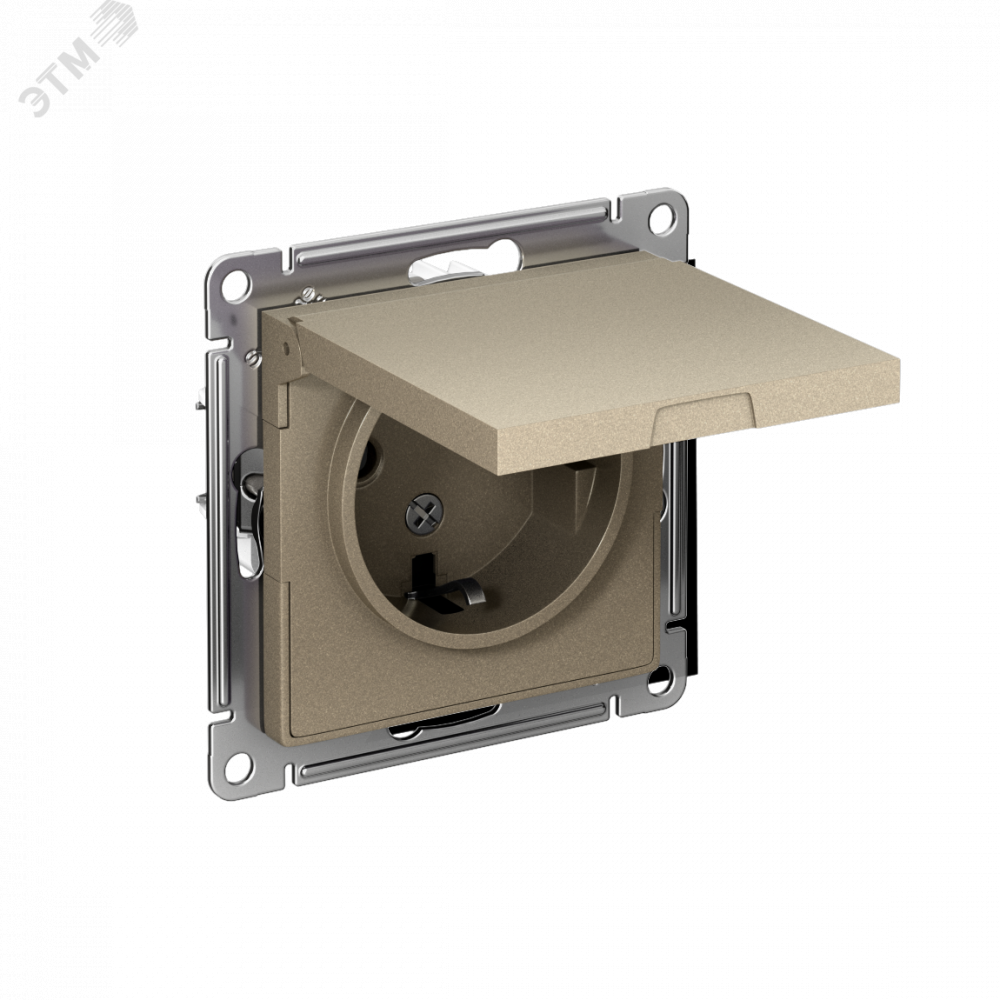 Розетка 1-м СП AtlasDesign 16А IP20 с заземл. защ. шторки с крышкой механизм шампань SE ATN000546, Розетка скрытого монтажа
