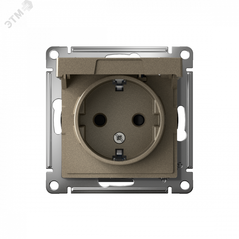 Механизм AtlasDesign (цвет шампань) розетки одинарной с заземлением, шторками и крышкой подходит для сетей 250 В, на ток 16 А.