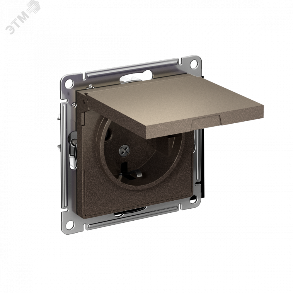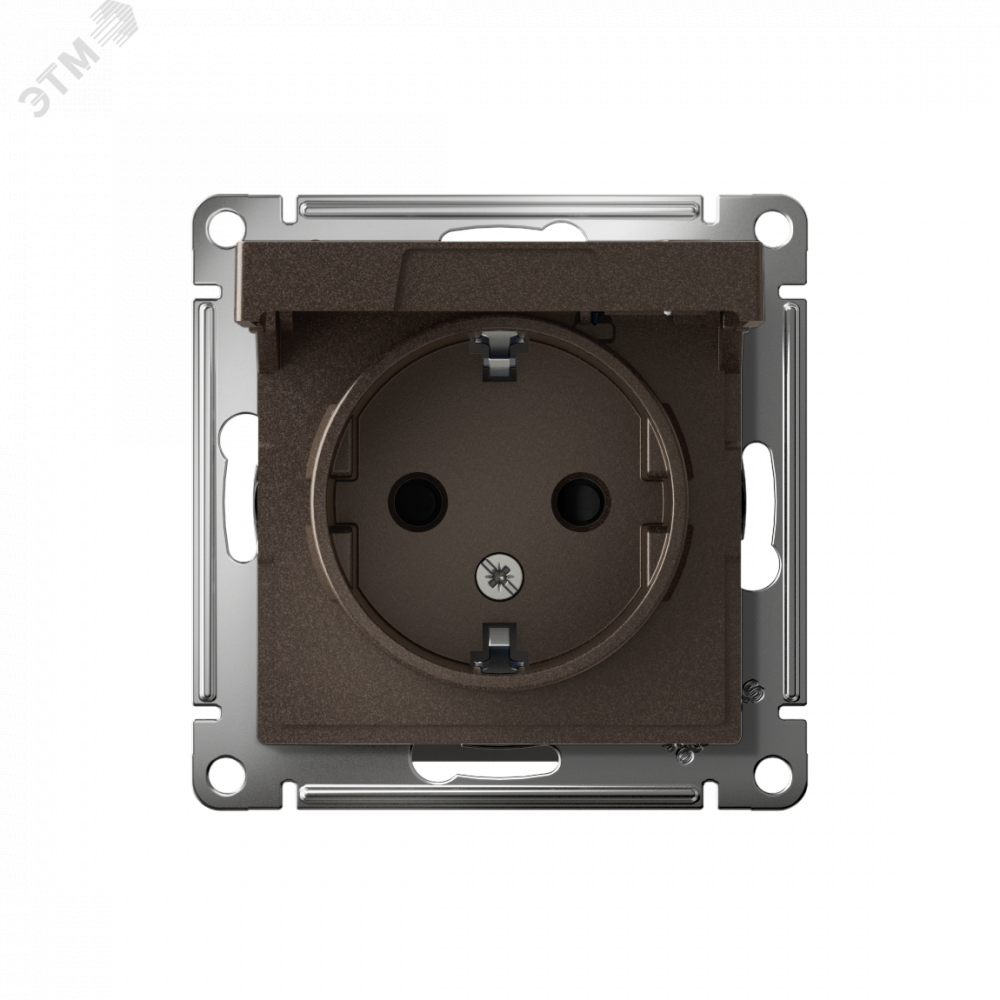 Розетка 1-м СП AtlasDesign 16А IP20 с заземл. защ. шторки с крышкой механизм мокко SE ATN000646, Розетка скрытого монтажа