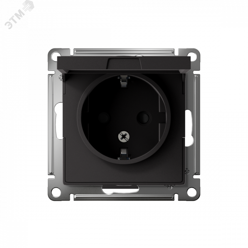 Механизм AtlasDesign (цвет карбон) розетки одинарной с заземлением, шторками и крышкой подходит для сетей 250 В, на ток 16 А.