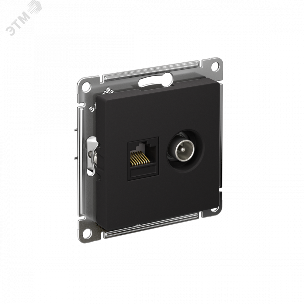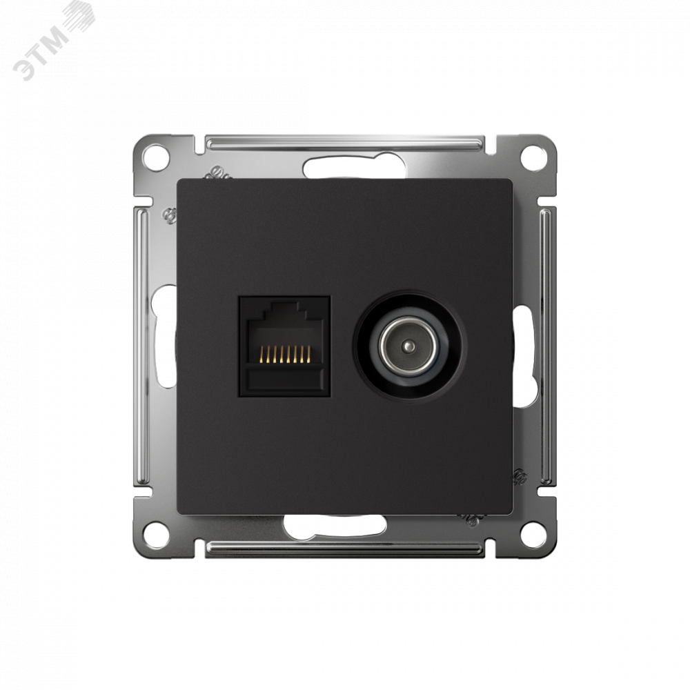 Розетка компьютерная + телевизионная 2-м AtlasDesign RJ45 кат.5E + TV механизм карбон SE ATN001089, Розетка скрытого монтажа