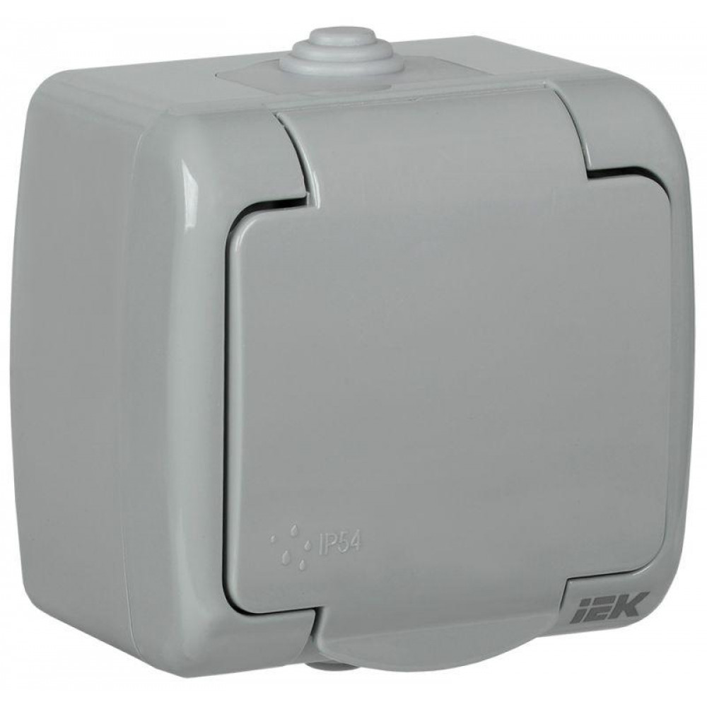 Розетка 1-м ОП Aquatic РСш12-2-А 16А IP54 с заземл. с крышкой сер. ERA12-K03-16-54, Розетка открытого монтажа
