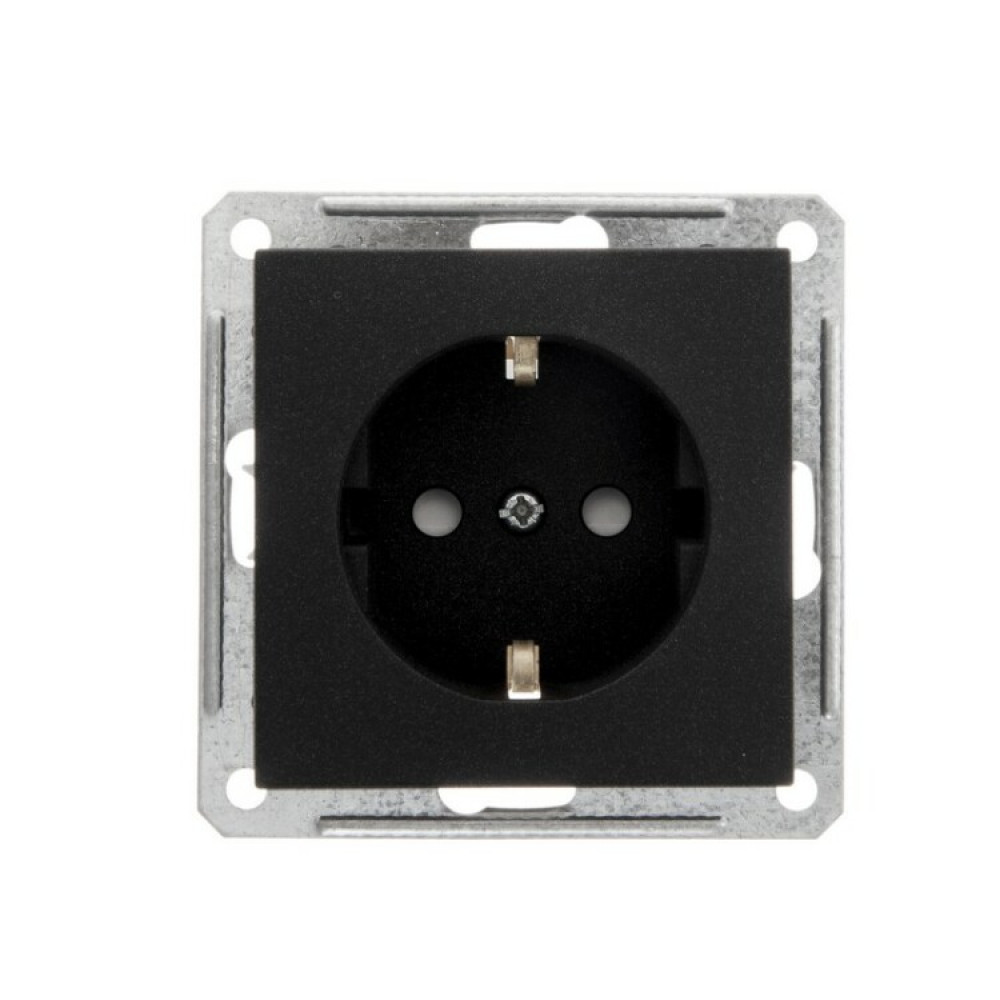 W59 РОЗЕТКА с заземлением со шторками, 16А, механизм, ЧЕРНЫЙ БАРХАТ C2 RS16-152-6-86, Розетка скрытого монтажа