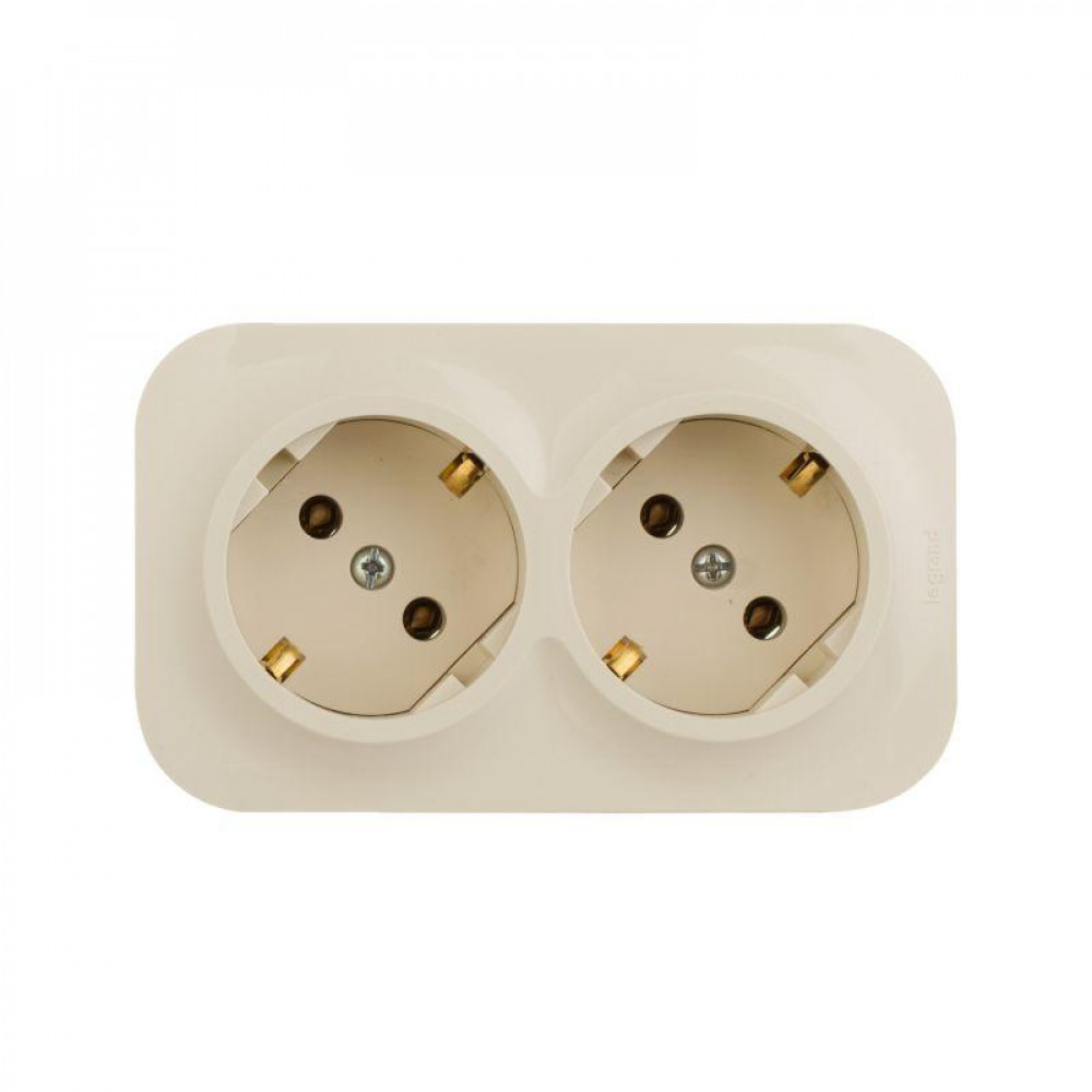 Розетка 2-м ОП Quteo 16А IP20 250В 2х2P+E с заземл. без защ. шторок сл. кость Leg 782263, Розетка открытого монтажа