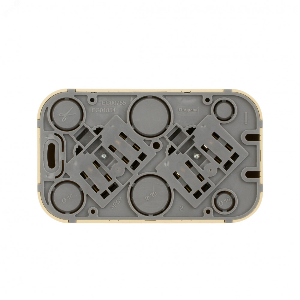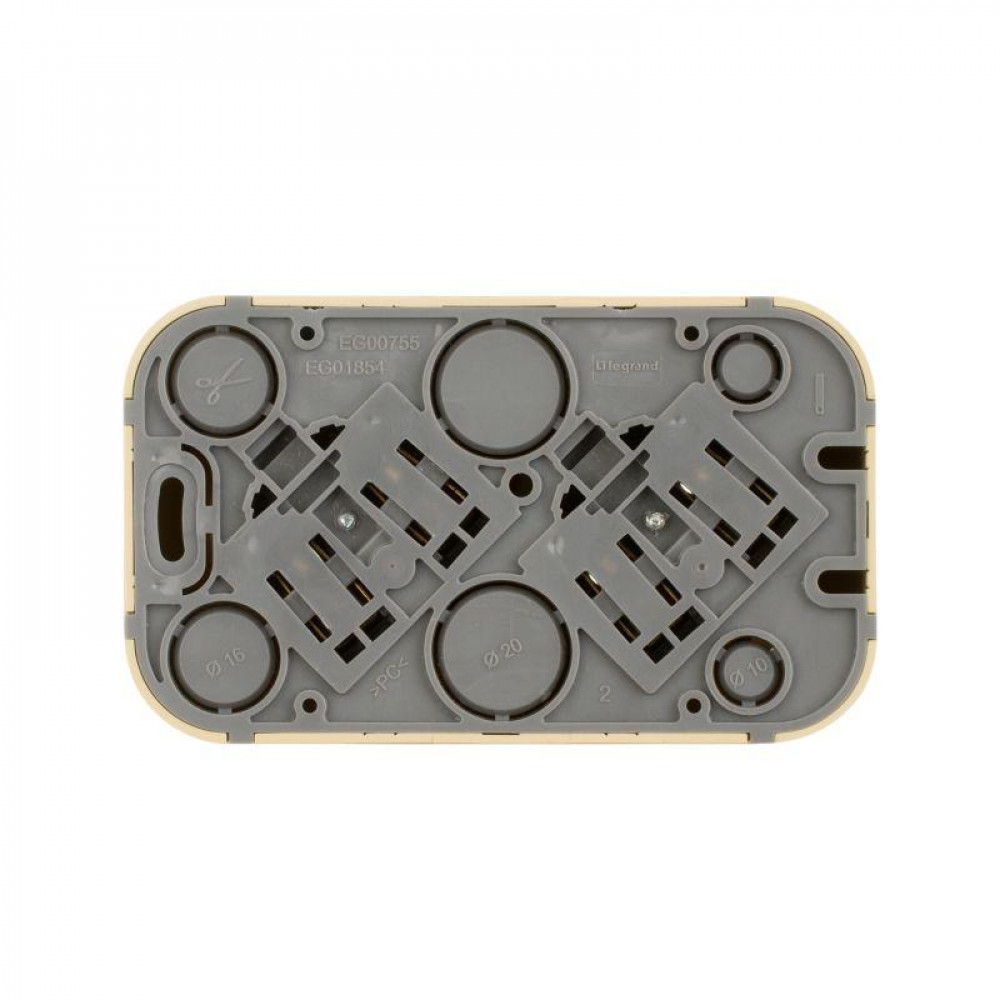 ← Розетка 2-м ОП Quteo 16А IP20 250В 2х2P+E с заземл. без защ. шторок сл. кость Leg 782263