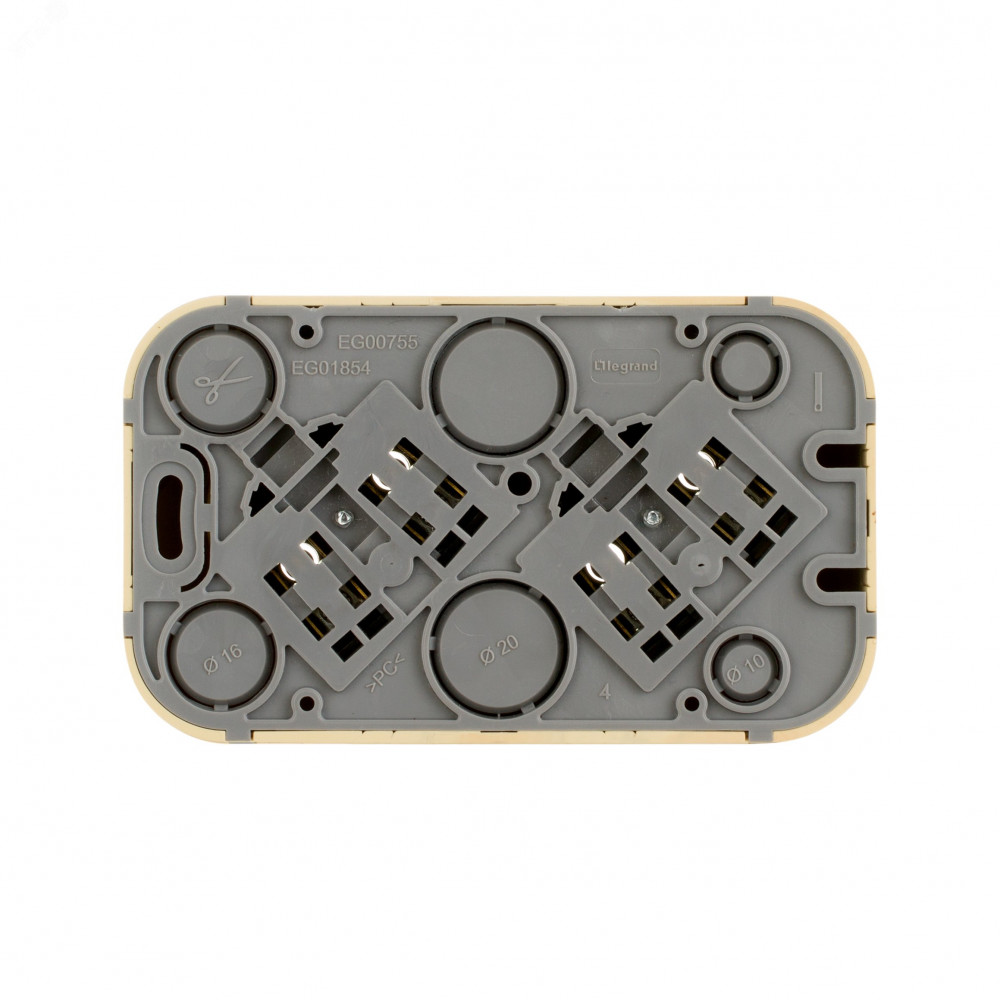 ← Розетка 2-м ОП Quteo 16А IP20 250В 2х2P без заземл. без защ. шторок сл. кость Leg 782261