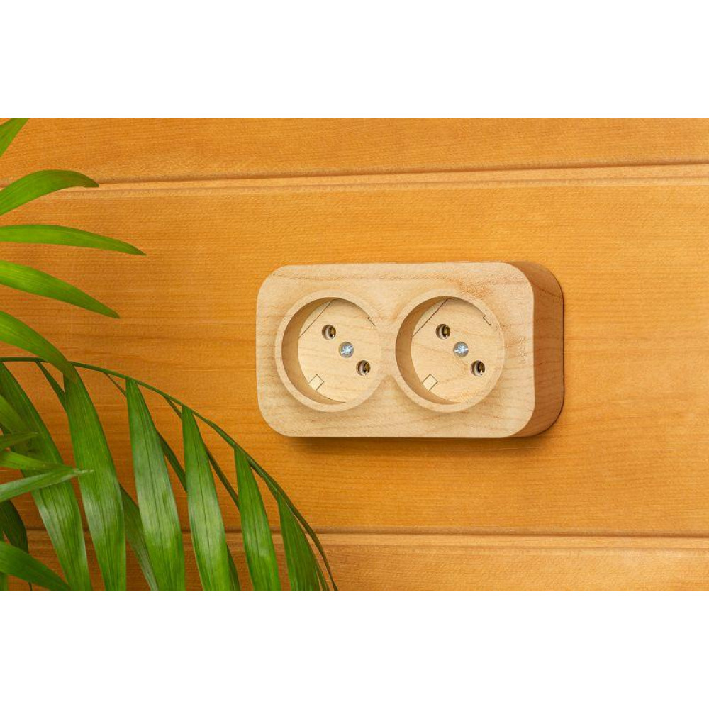 Описание Розетка 2-м ОП Quteo 16А IP20 250В 2х2P без заземл. без защ. шторок дерево Leg 782281