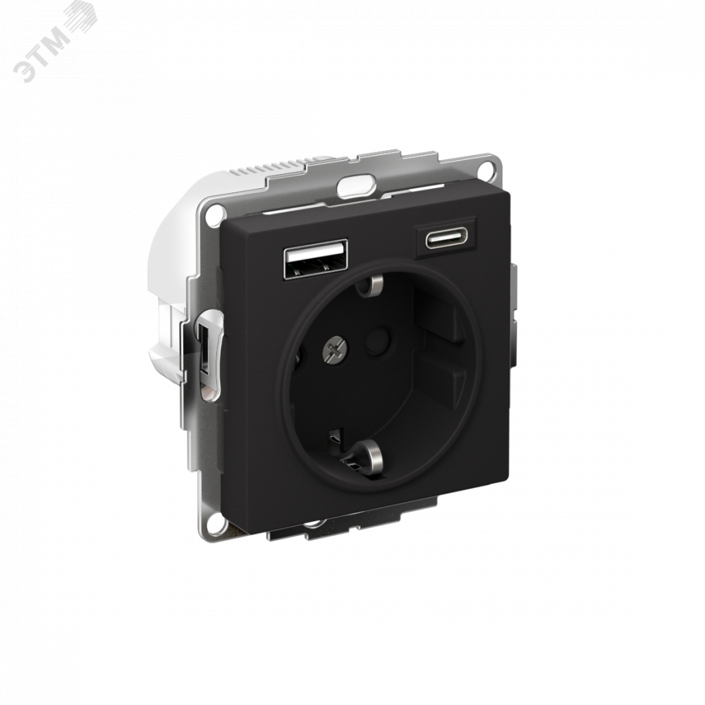 Описание Розетка AtlasDesign 16А с 2-мя заряд. устройствами USB тип A+C 5В/2.4А 2х5В/1.2А механизм карбон SE ATN001032