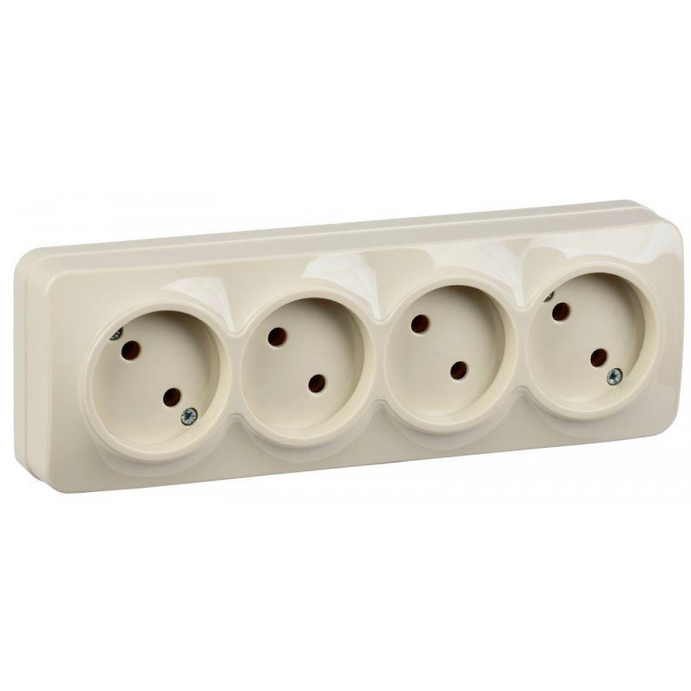 Розетка 4-м ОП GLORY РС24-2-ХК 10А без заземл. крем. ERH40-K33-10, Розетка открытого монтажа
