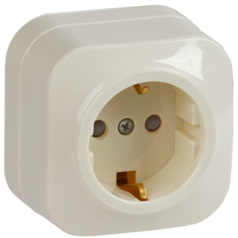 Розетка 1-м ОП GLORY РСш20-3-ХК 16А с заземл. защ. шторки крем. ERH14-K33-16, Розетка открытого монтажа