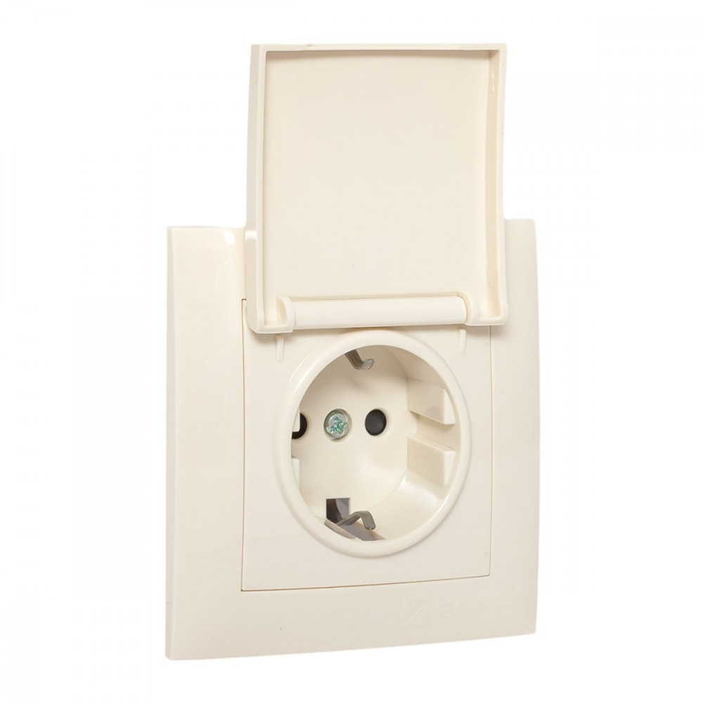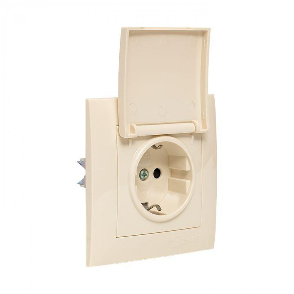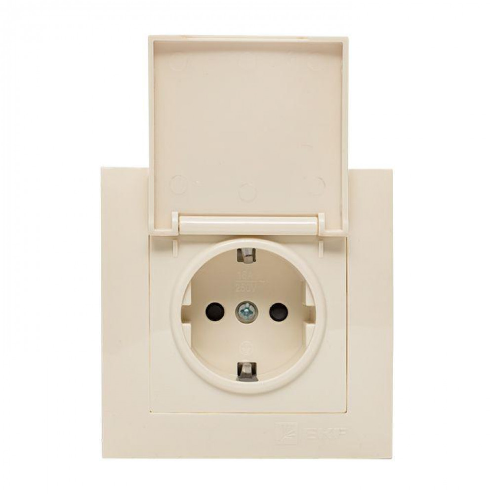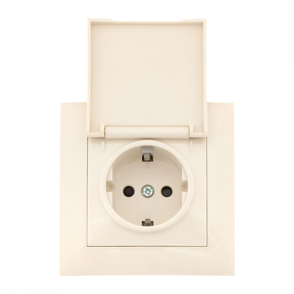 Розетка 1-м СП Валенсия 16А с заземл. с крышкой защ. шторки крем. PROxima EWV10-124-20, Розетка скрытого монтажа