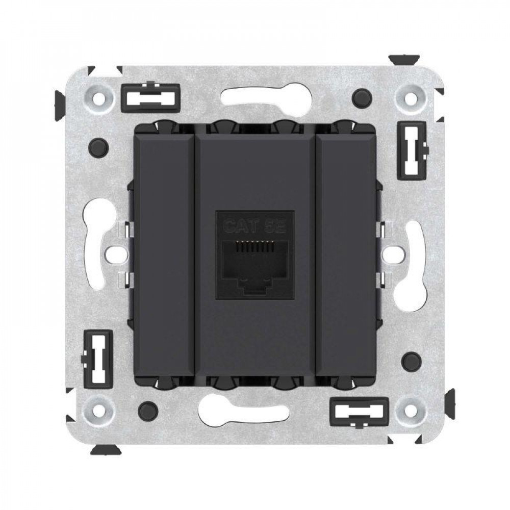 Розетка компьютерная 1-м СП Avanti "Черный матовый" RJ45 кат.5E без шторок механизм 4412663, Розетка скрытого монтажа