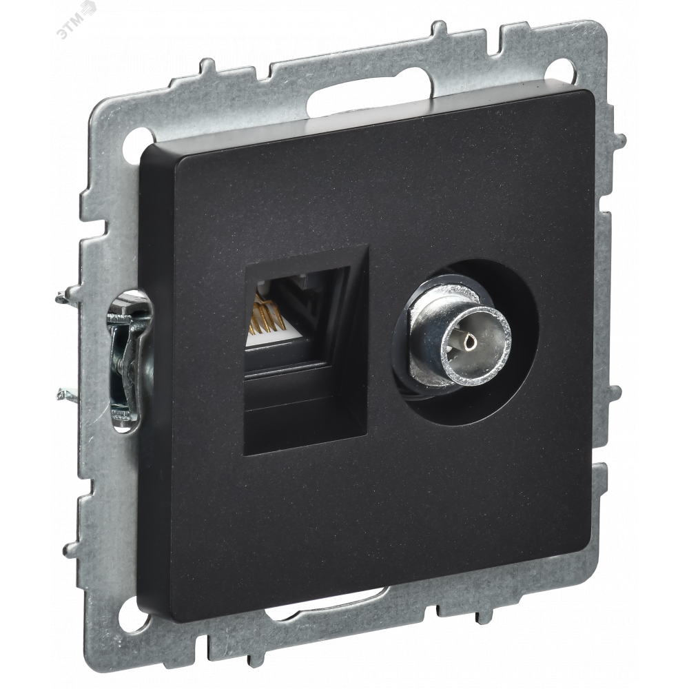 Розетка компьютерная + телевизионная 2-м Brite РТВ/РК12-БрЧ RJ45 кат.5E + TV черн. BR-AK20-1-K02, Розетка скрытого монтажа