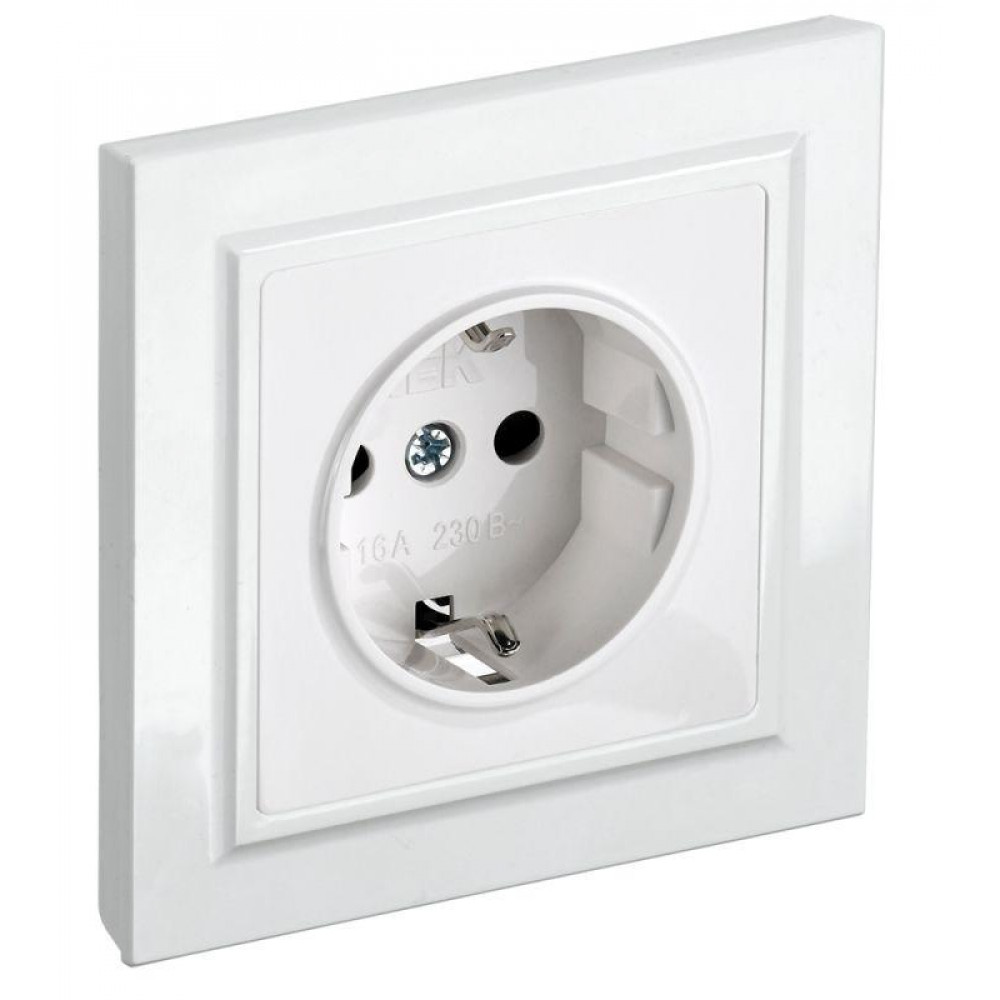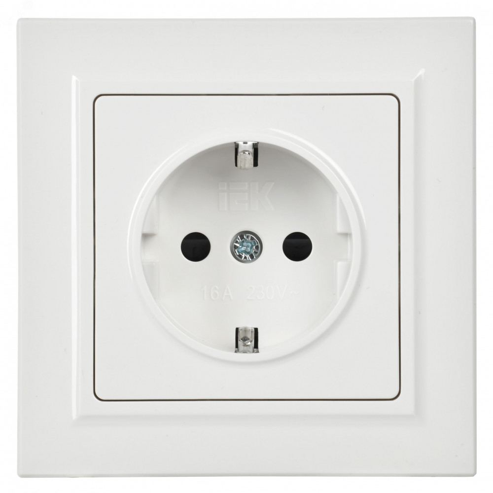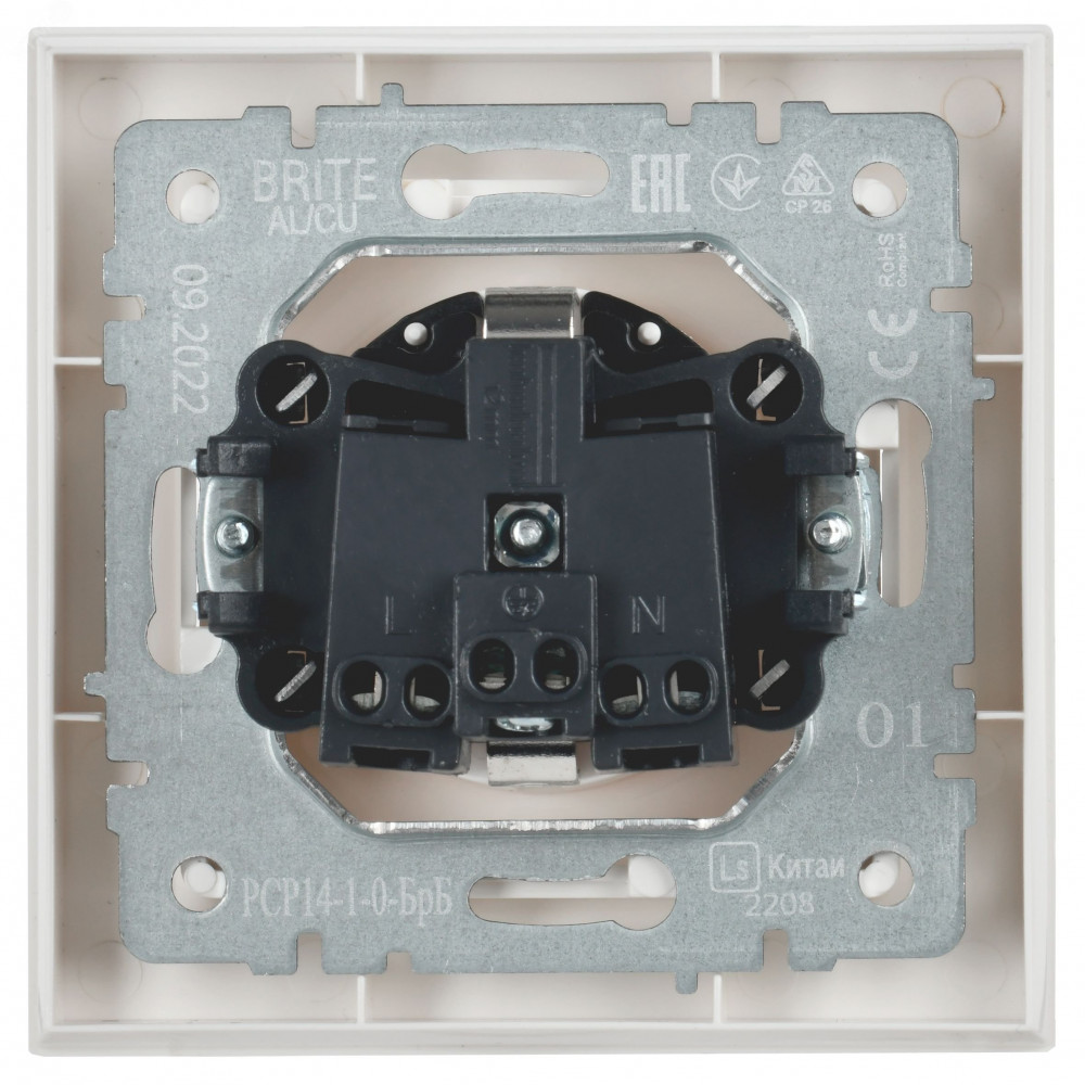 Розетка BRITE РСР14-1-0-БрБ 16А в сборе с заземл. защ. шторки бел. BR-R14-16-K01-F, Розетка скрытого монтажа
