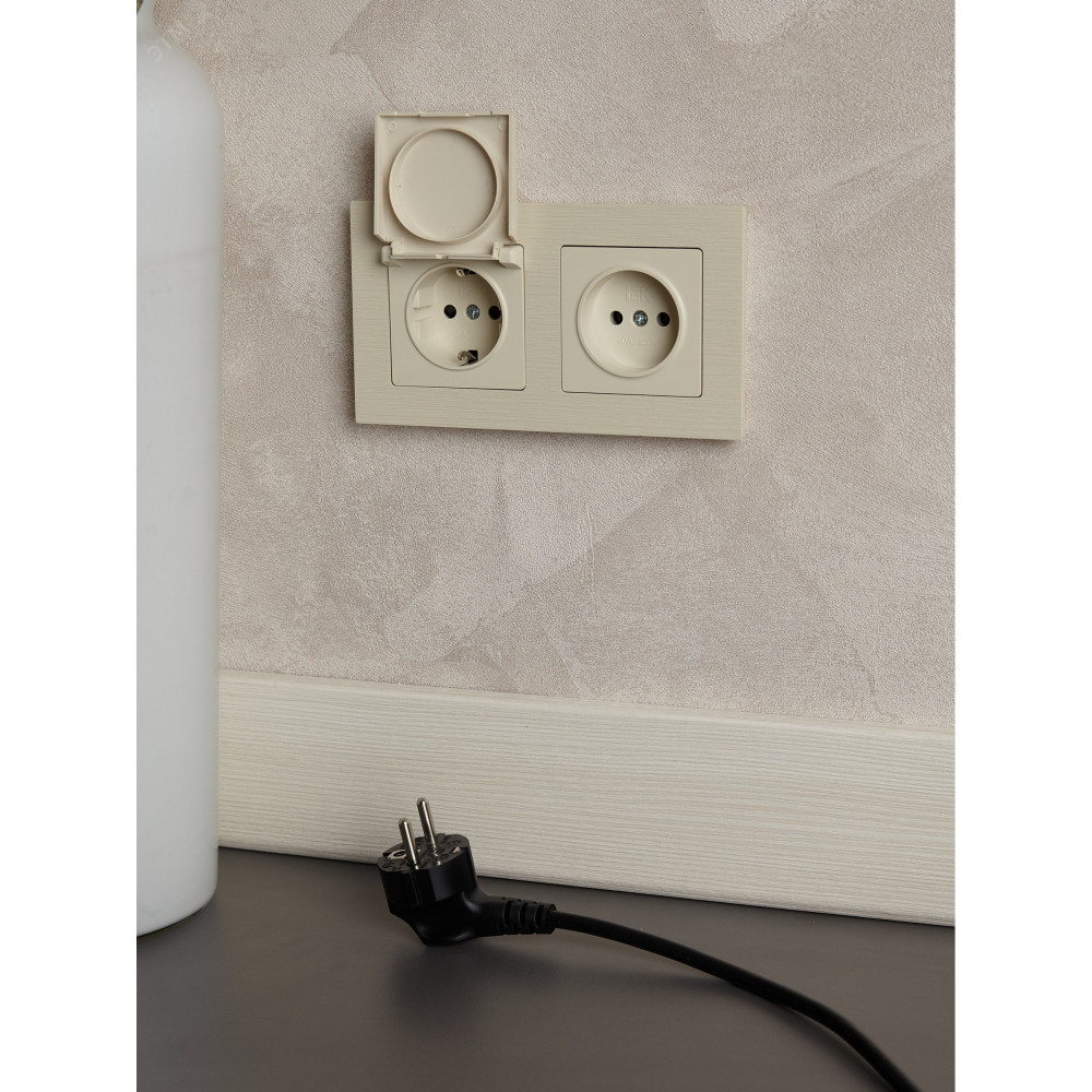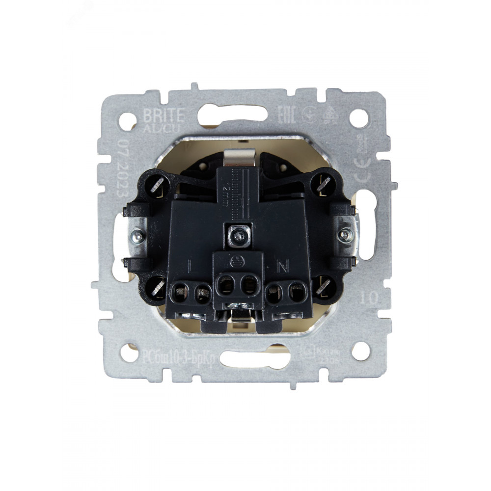 Розетка BRITE РСбш10-3-БрКр 16А IP20 с заземл. защ. шторки с крышкой беж. BR-R16-16-K10, Розетка скрытого монтажа