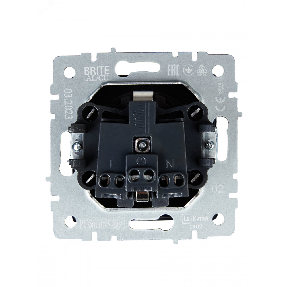 Розетка BRITE РСбш10-3-БрЧ 16А IP20 с заземл. защ. шторки с крышкой черн. BR-R16-16-K02, Розетка скрытого монтажа