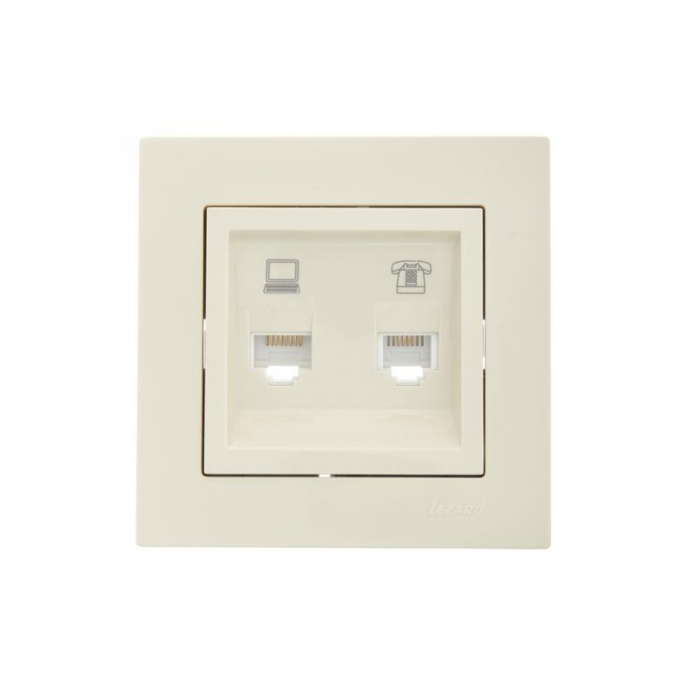 Описание Розетка компьютерная + телефонная 1-м СП Vesna механизм крем. 742-0388-143