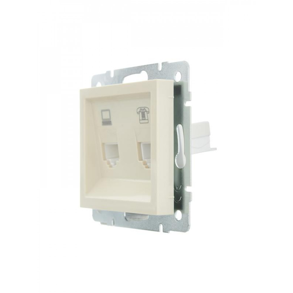 Розетка компьютерная + телефонная 1-м СП Vesna механизм крем. 742-0388-143, Розетка скрытого монтажа