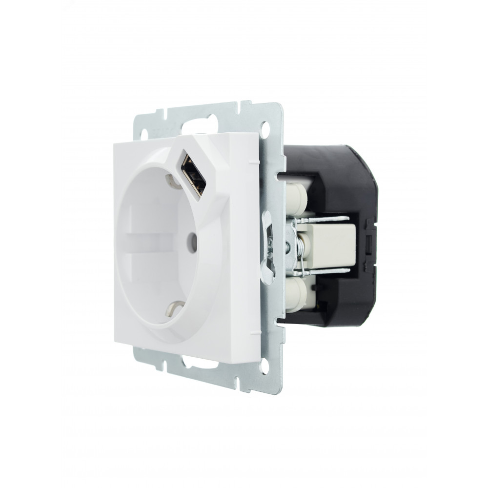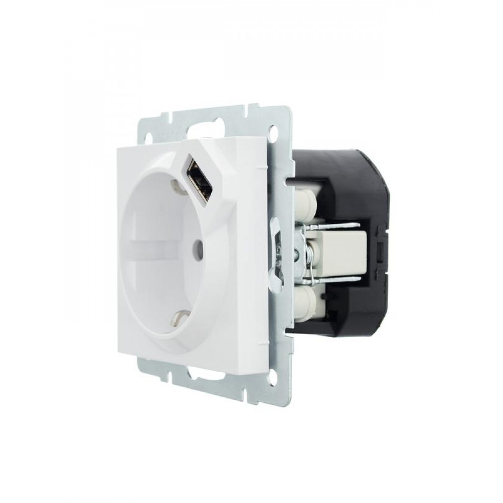 Розетка 1-м СП Vesna с заземл. с заряд. устройством USB механизм бел. 742-0288-181, Розетка скрытого монтажа