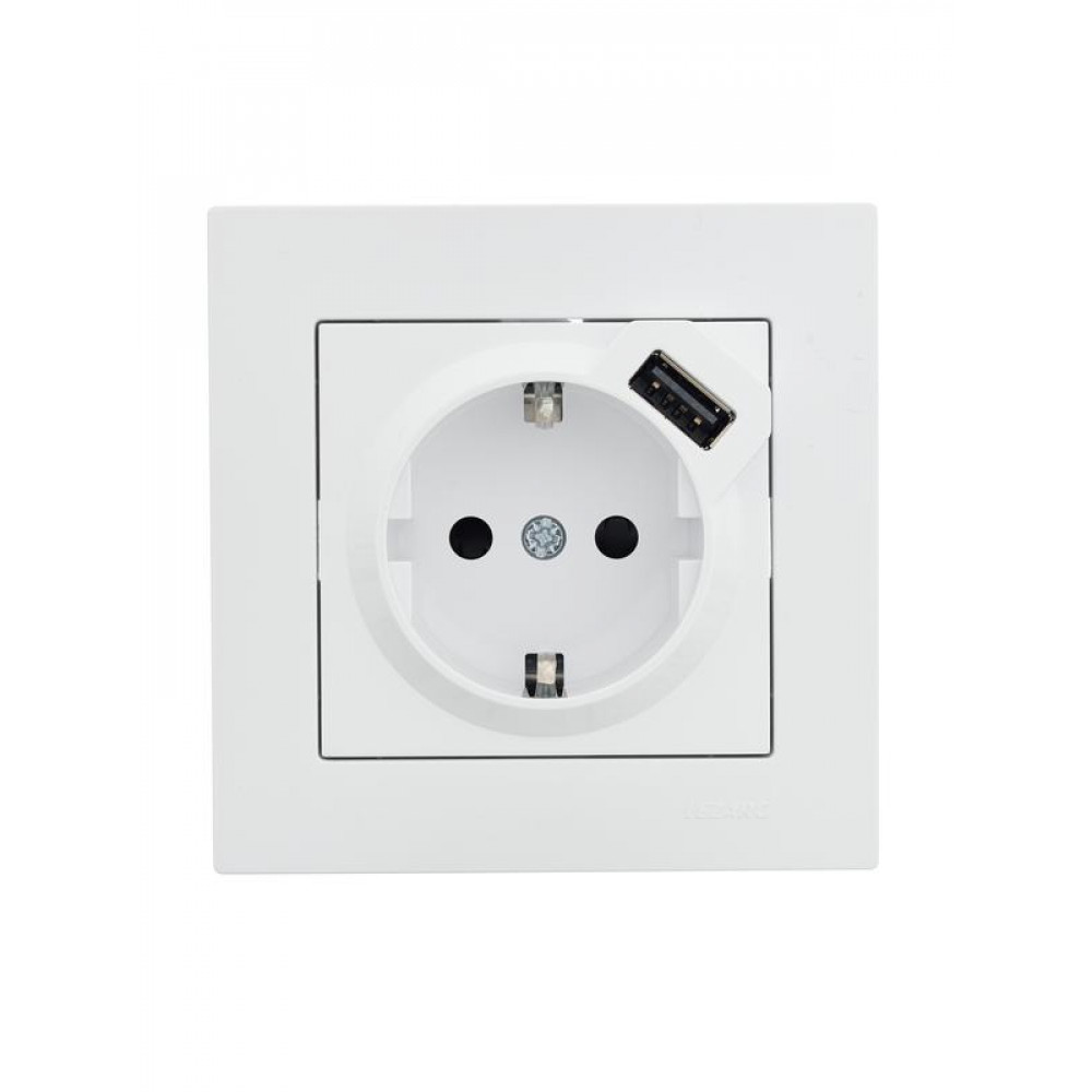 Описание Розетка 1-м СП Vesna с заземл. с заряд. устройством USB механизм бел. 742-0288-181