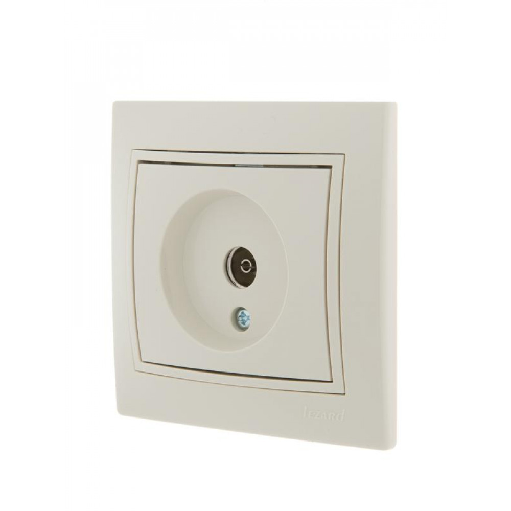 Розетка TV СП Мира оконечная крем/крем. Lezard 701-0303-130 серии "Мира" серии "Мира" для скрытой установки сочетает в себе гармонию форм с изяществом плавных линий и гладкой фактуры. Изделия данной серии удачно вписываются в самый изысканный интерьер и производят приятное впечатление.