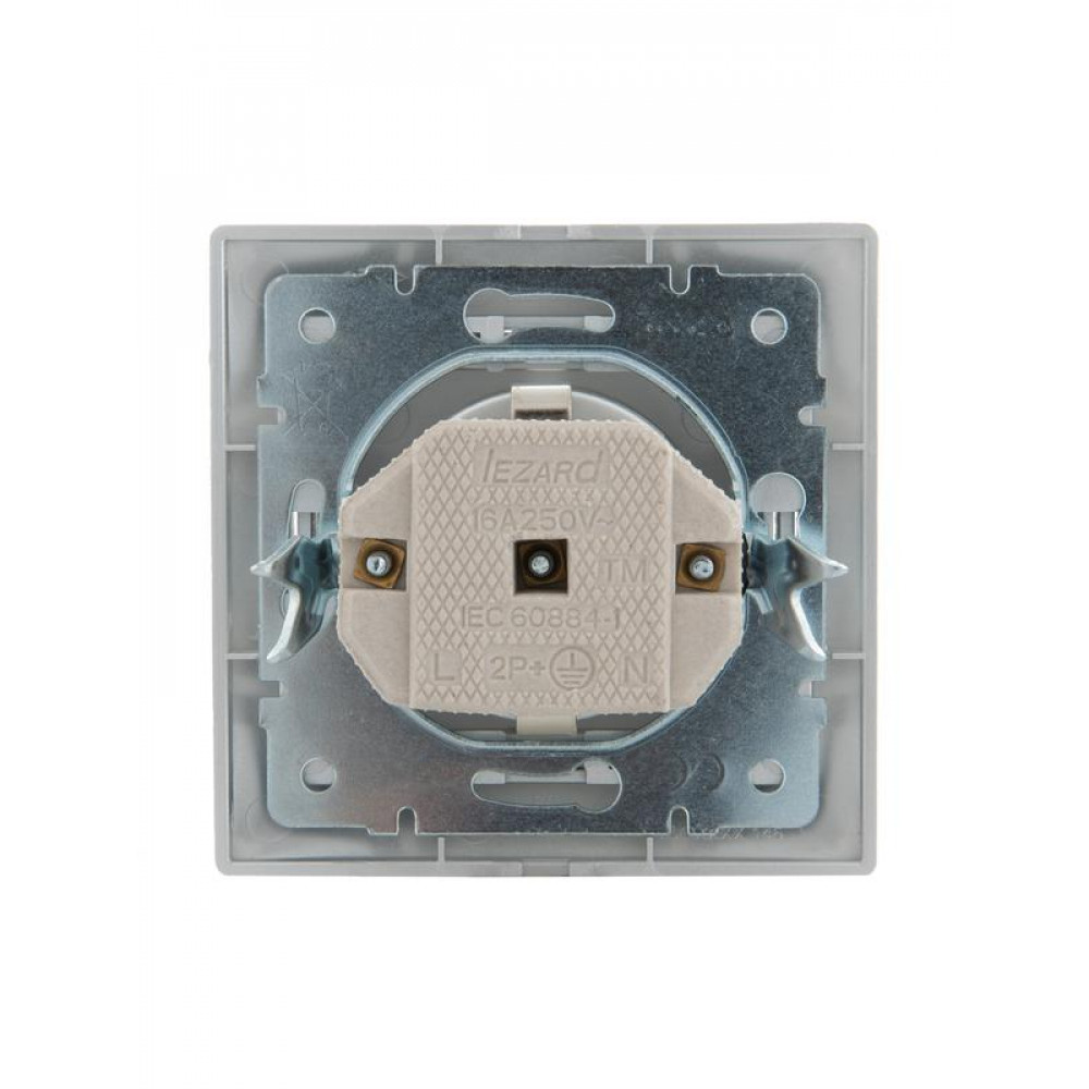 Розетка 1-м СП Mira 16А IP20 с заземл. со вставкой керамика сер. метал. 701-1010-122, Розетка скрытого монтажа