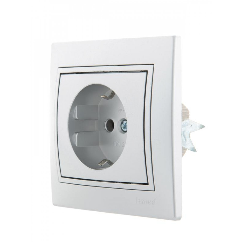 Розетка 1-м СП Мира керам. с заземл. метал. сер. Lezard 701-1010-122 представляет собой электроустановочный механизм одноместной розетки.