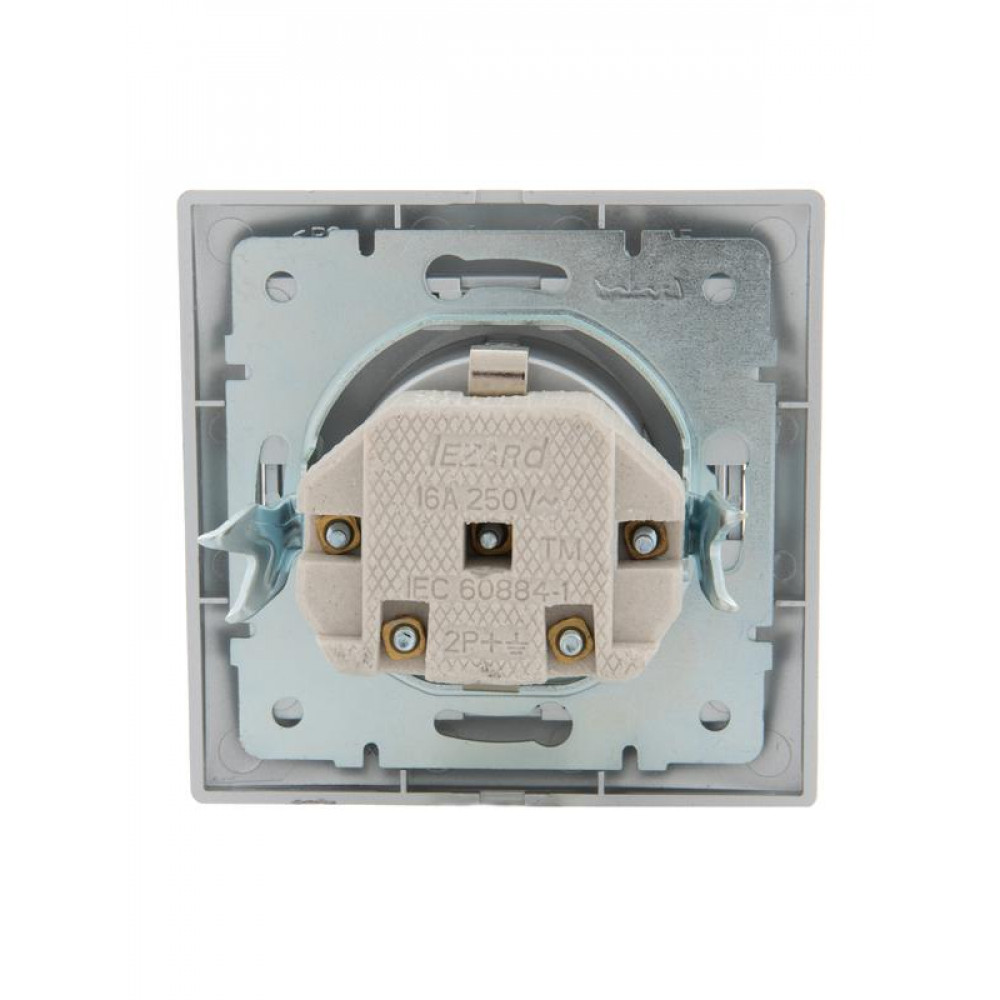 Розетка 1-м СП Mira 16А IP20 с заземл. с защ. крышкой со вставкой керамика сер. метал. 701-1010-123, Розетка скрытого монтажа