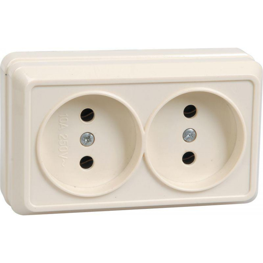 Розетка 2-м ОП Октава 10А IP20 без заземл. крем. ERO20-K33-10-DC, Розетка открытого монтажа