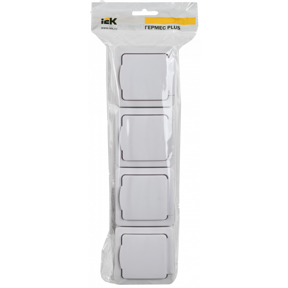 Розетка 4-м ОП Гермес Plus РСб24-3-ГПБд 16А IP54 с заземл. с дым. крышкой бел. ERMP42-K03-16-54-EC →