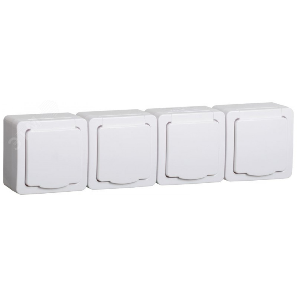 Розетка 4-м ОП Гермес Plus РСб24-3-ГПБб 16А IP54 с заземл. с крышкой бел. ERMP42-K01-16-54-EC, Розетка открытого монтажа