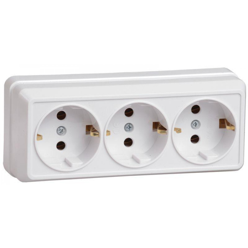 Розетка 3-м ОП Октава РС23-3-ОБ 16А IP20 с заземл. бел. ERO31-K01-16-DC, Розетка открытого монтажа
