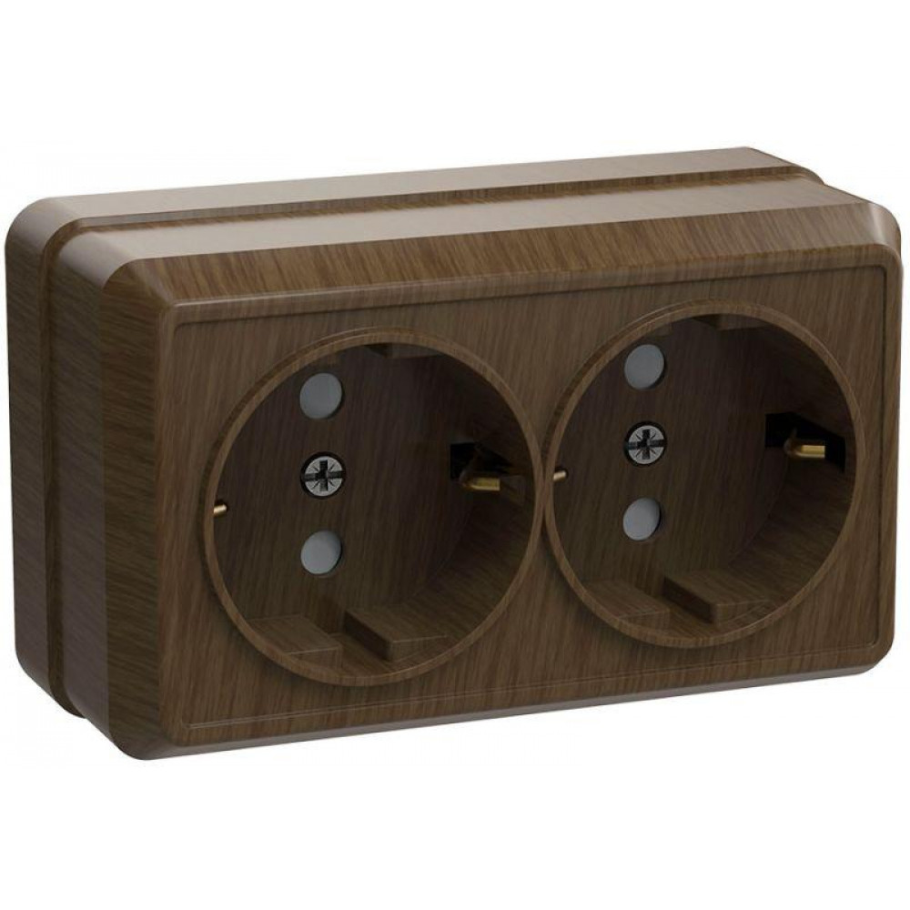 Розетка 2-м ОП Октава РС22-3-ОД 16А IP20 с заземл. дуб ERO21-K04-16-DC, Розетка открытого монтажа