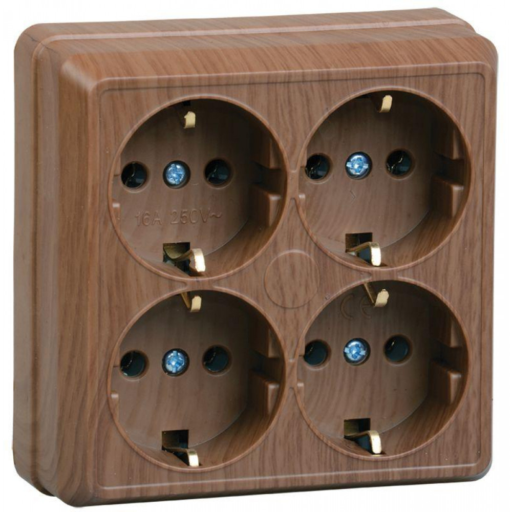 Розетка 4-м ОП Октава РС24-3-ОД 16А IP20 с заземл. дуб ERO41-K04-16-DC, Розетка открытого монтажа