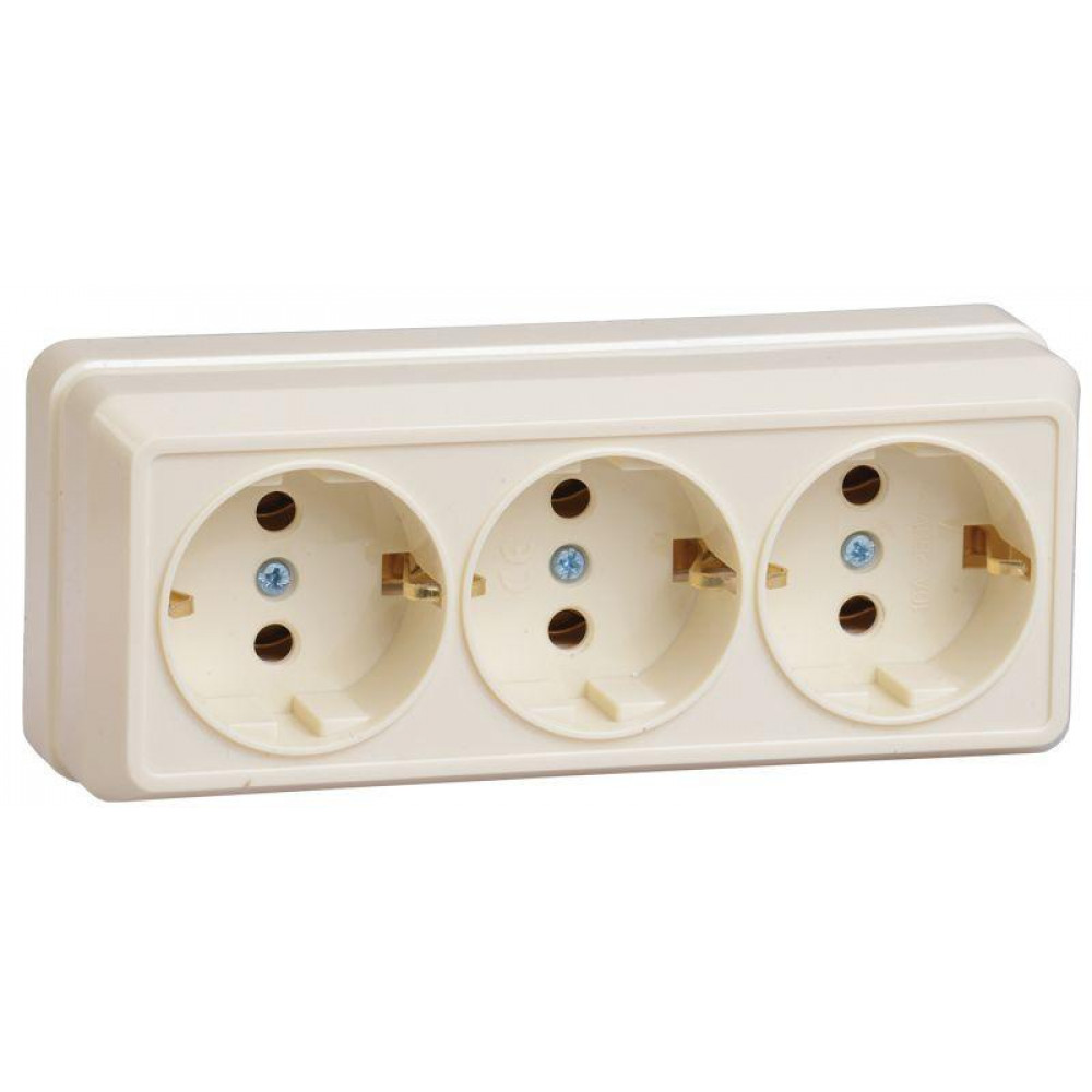 Розетка 3-м ОП Октава РС23-3-ОК 16А IP20 с заземл. крем. ERO31-K33-16-DC, Розетка открытого монтажа
