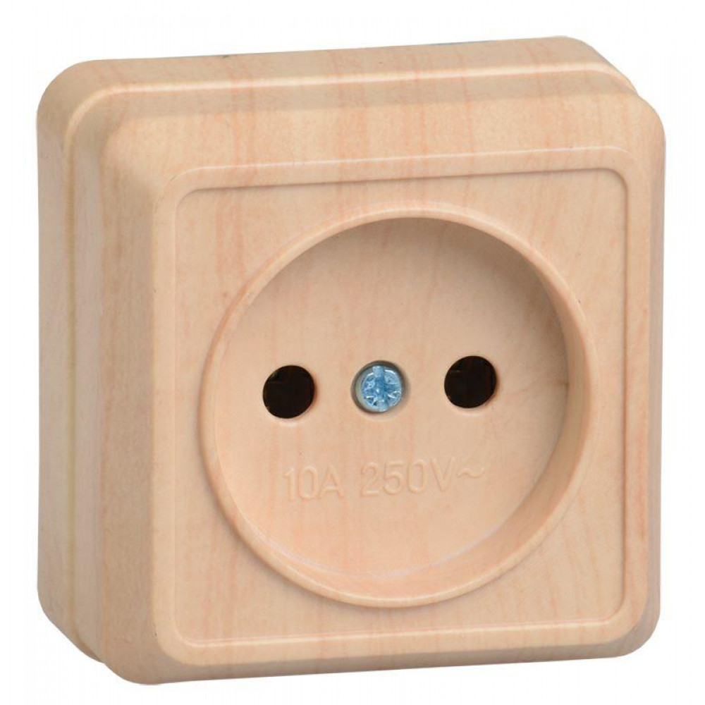 Розетка 1-м ОП Октава 10А IP20 без заземл. сосна ERO10-K03-10-DC, Розетка открытого монтажа