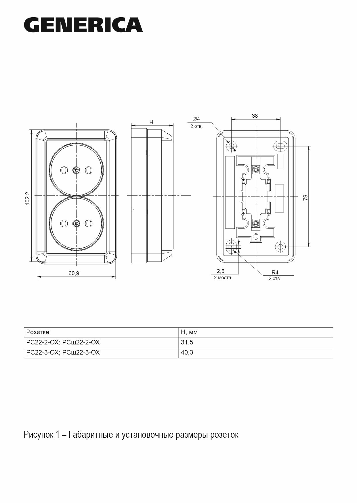 Описание Розетка 2-м ОП Октава РС22-3-ОС 16А IP20 с заземл. сосна ERO21-K03-16-DC