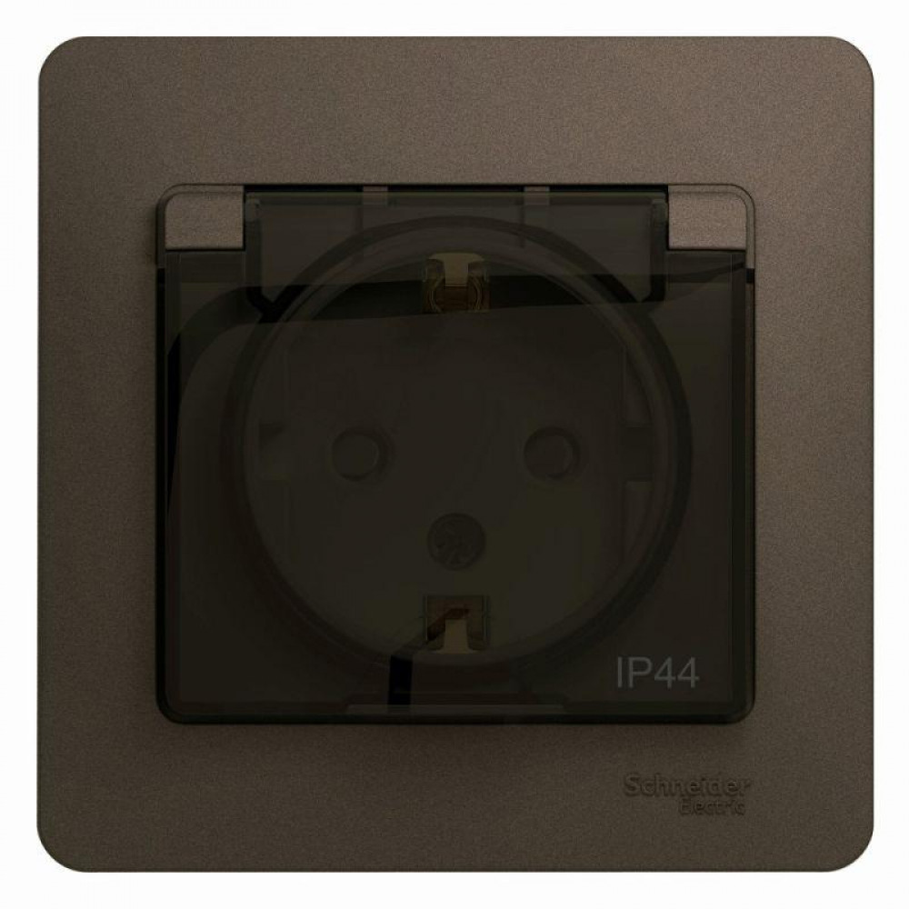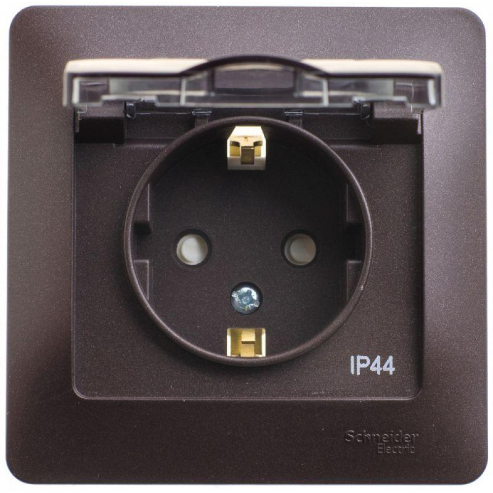 Розетка 1-м СП 1мод. Glossa 16А IP44 с заземл. защ. шторки с крышкой в сборе шоколад SE GSL000848, Розетка скрытого монтажа