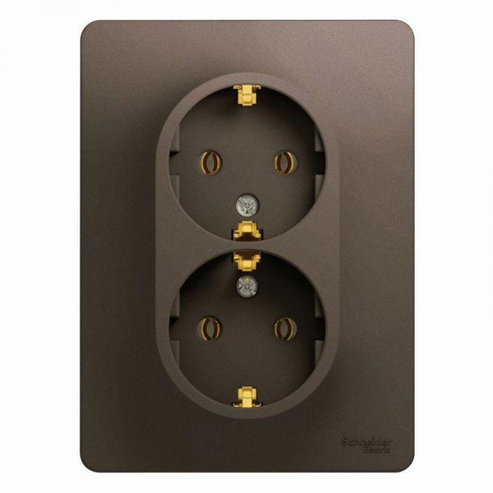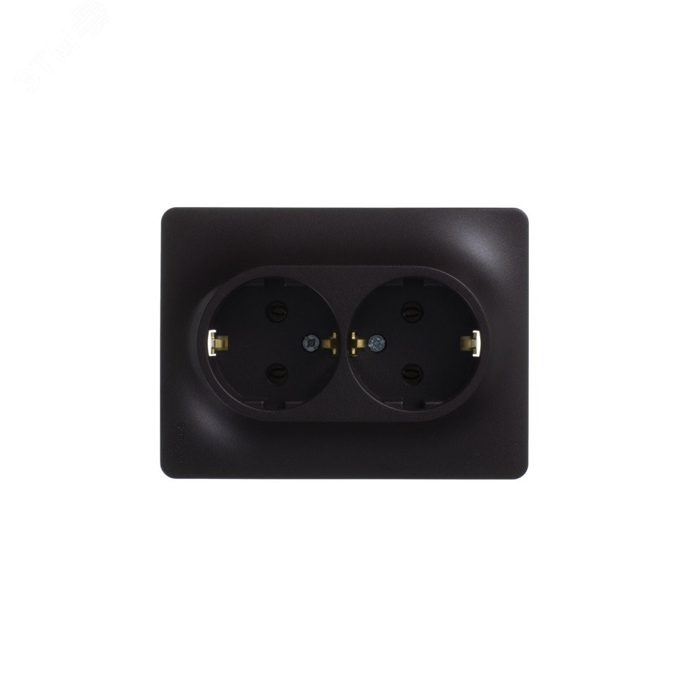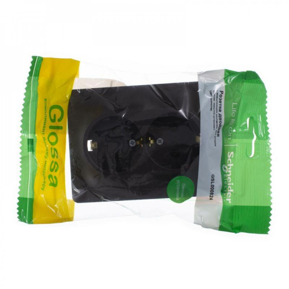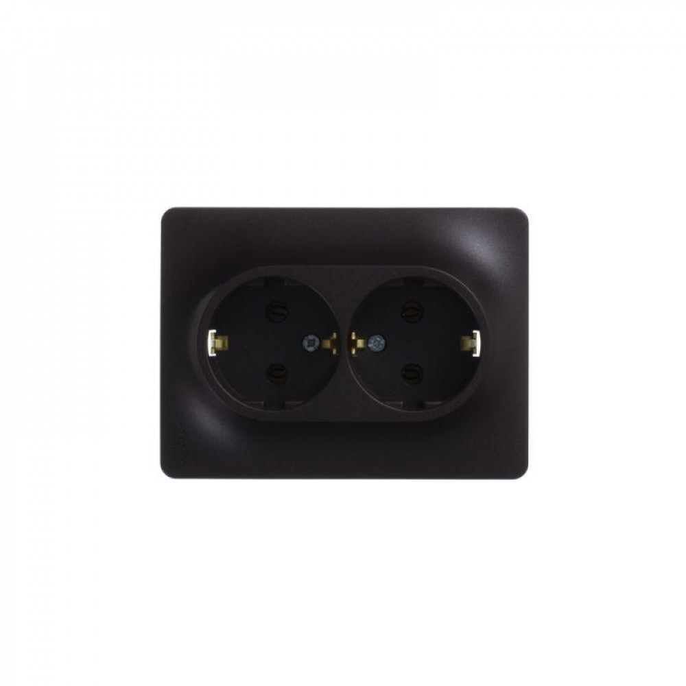 Розетка двойная Glossa (в сборе, цвет шоколад) с заземлением, без шторок подходит для сетей 250 В, на ток 16 А.