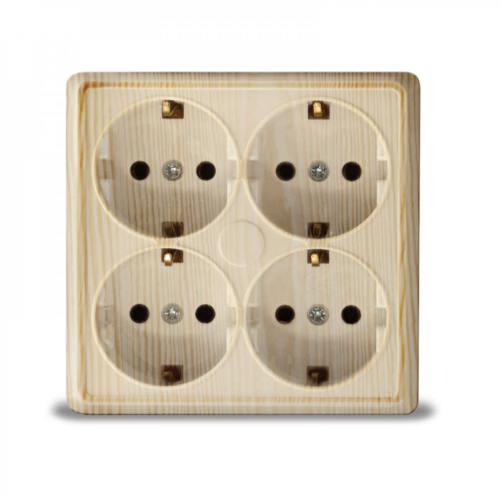 Розетка 4-м ОП Олимп с заземл. квадрат сосна 1177, Розетка открытого монтажа