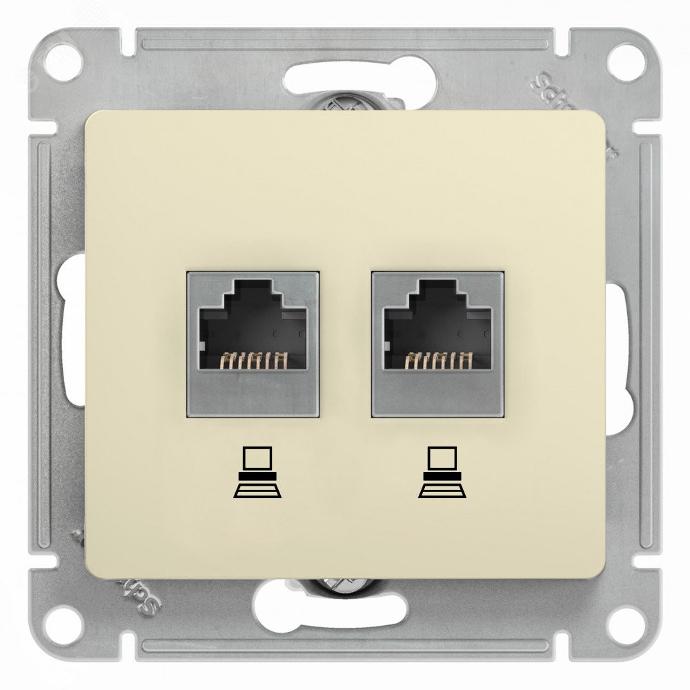 Механизм Glossa (цвет бежевый) двойной розетки компьютерной с разъёмом RJ45 категория 5е предназначен для удобного и быстрого подключения вашего компьютера к компьютерной сети.
