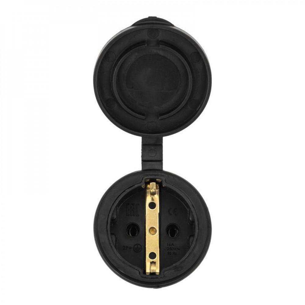 Описание Розетка переносная влагозащ. с крышкой 16А IP44 230В 2P+PE каучук 111-004-4