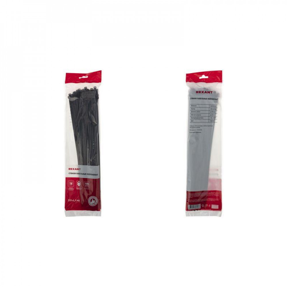 Хомут нейлоновый (кабельная стяжка) 350х4,8 мм чёрный REXANT предназначен для крепления или обвязки в жгут кабелей и проводов, крепления гибких гофротруб, а также других предметов к несущей поверхности или для соединения между собой. Такая стяжка используется при проведении электромонтажных работ, при монтаже структурированных кабельных систем, для бытовых нужд, а также в других отраслях народного хозяйства.