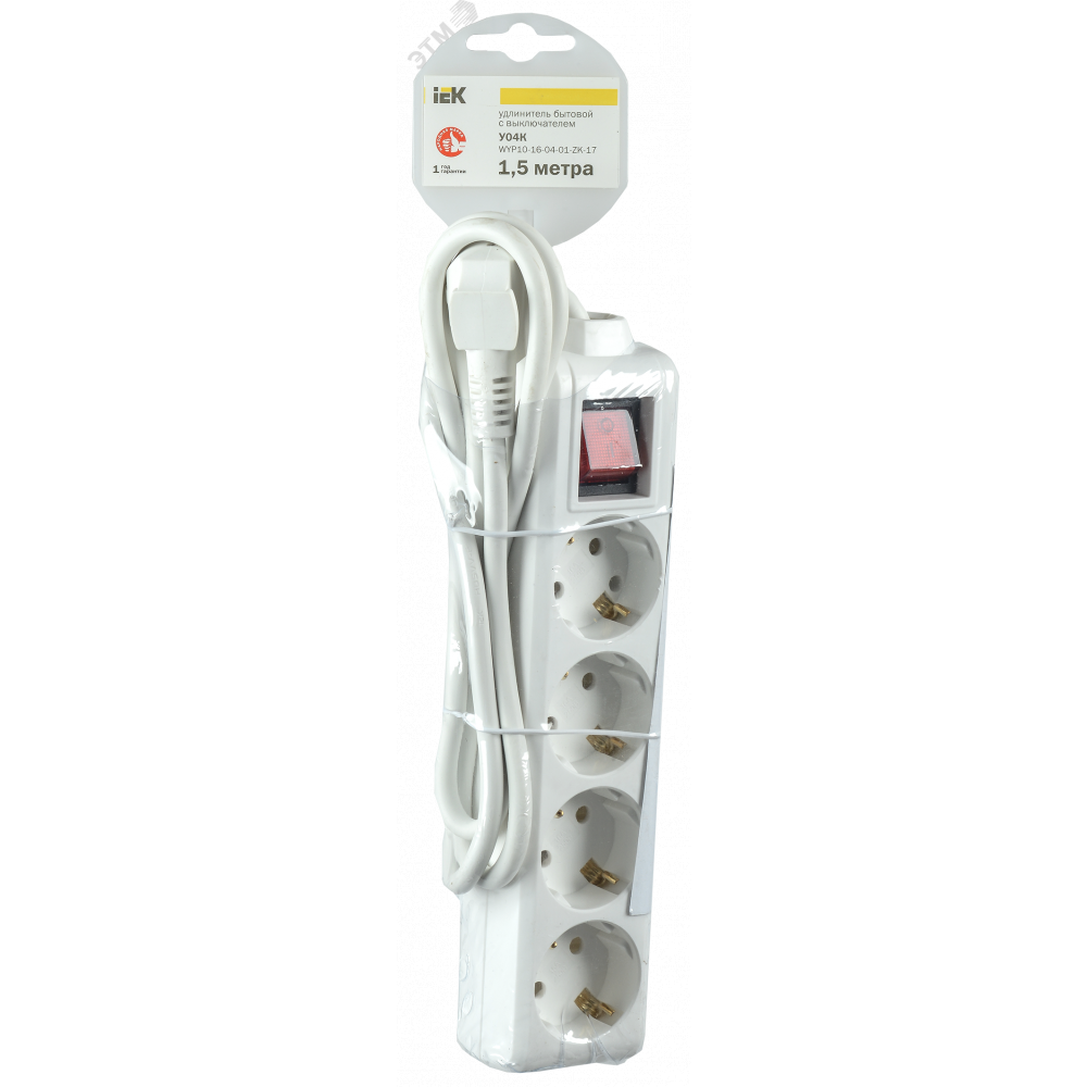 Удлинитель 4х3м с заземл. 16А IP20 У04К 2P+PE 250В ПВС 3х1 с выкл. WYP10-16-04-03-ZK-N, Удлинитель, сетевой фильтр