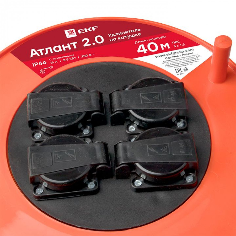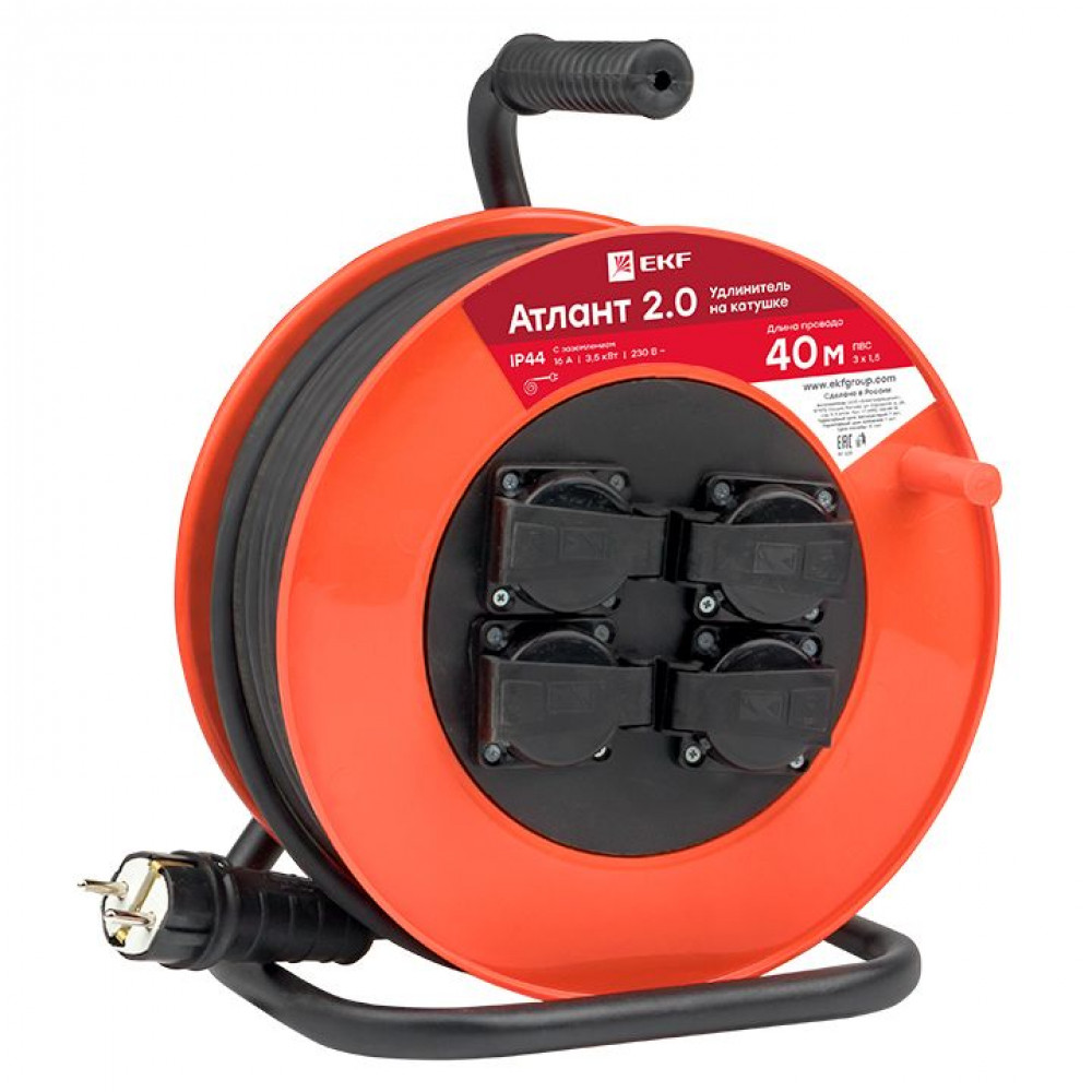 Удлинитель на катушке 4х40м с заземл. 16А IP44 Атлант 2.0 3.5кВт ПВС 3х1.5 PROxima UKA02-16-315-4-40-IP44, Удлинитель, сетевой фильтр